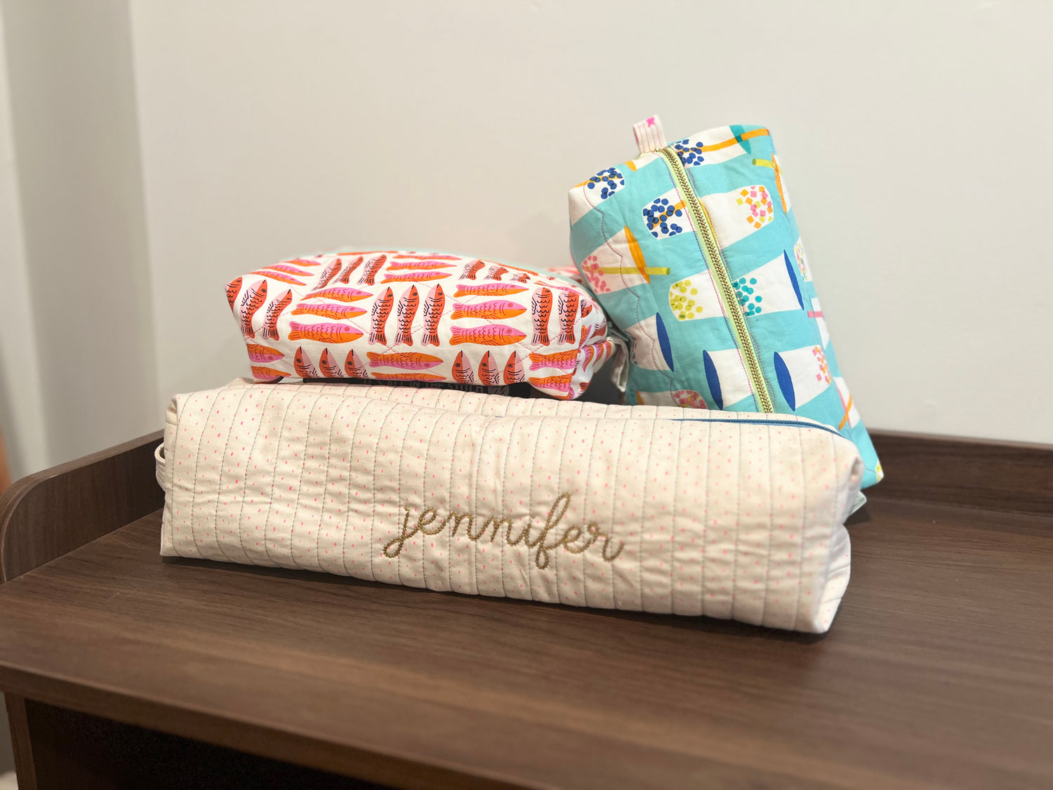 Learn how to make a quilted zipper pouch! Choose between the versatile standard size (10"x5"x4") or the longer hair tool size (16"x4"x3").